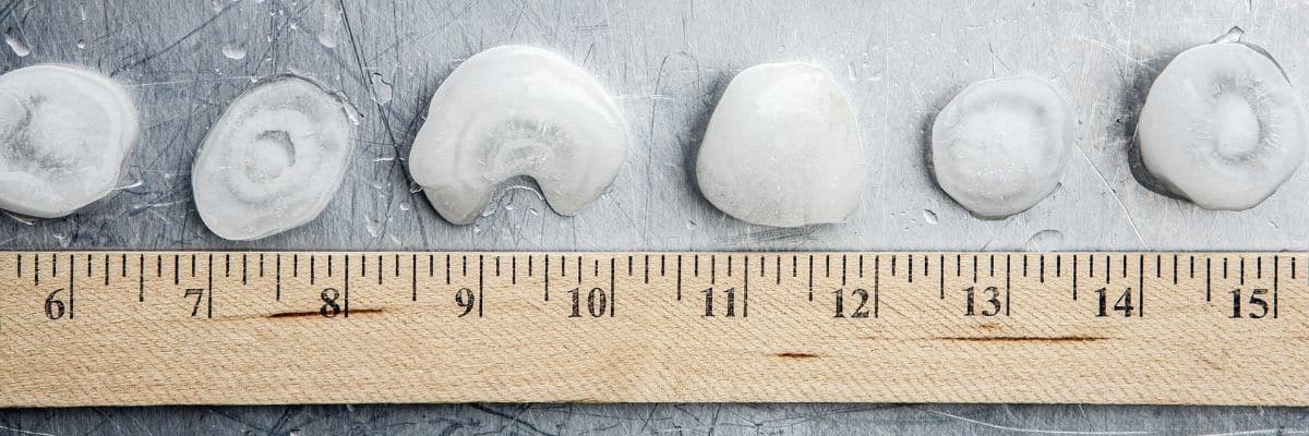 Following a hailstorm, or even during the storm event, you’re likely to see weather reports that describe the size of the hail. Typically, this is done by comparing the hail to some everyday object, such as a golf ball or a quarter.
